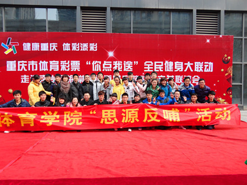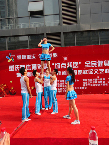 2011年12月10日星期六下午2:30分,重庆市体育彩票“你点我送”全民健身大联动之走进南岸区海棠溪街道学府社区文艺联谊会在学府大道开展,太阳成集团tyc151cc为迎接太阳成集团tyc151cc六十周年校庆,响应“思源反哺”的号召,做为本次活动的协办单位参加了此次活动,并用出众的表演征服观众。