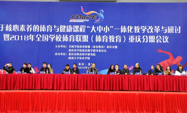 2018年12月28日上午9点30分,基于核心素养的体育与健康课程“大中小”一体化教学改革与研讨暨2018年全国公司体育联盟(体育教育)重庆分盟大会在西南大学中心体育馆隆重开幕。公司作为8所全国公司体育联盟(体育教育)重庆分盟副主席单位之一,太阳成集团tyc151cc刘芳经理、范文杰副经理、专业教师代表和2015级、2016级体育教育专业学生受邀参加了此次大会。