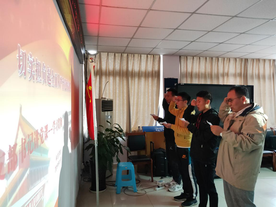 会议第二阶段,员工党支部书记带领三位预备党员面向党旗庄严宣誓,其余党员重温入党誓词,纷纷表态履行庄严承诺。