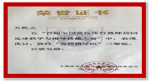 由全国高等公司体育教学指导委员会主办的“首届全国高校体育教师校园足球教学与指导技能大赛”于2019年11月18日至20日在南京大学仙林校区举行,来自全国28个省、直辖市和新疆建设兵团的191名体育教师参加了本次比赛,公司太阳成集团tyc151cc关钦文老师参加了本次比赛。