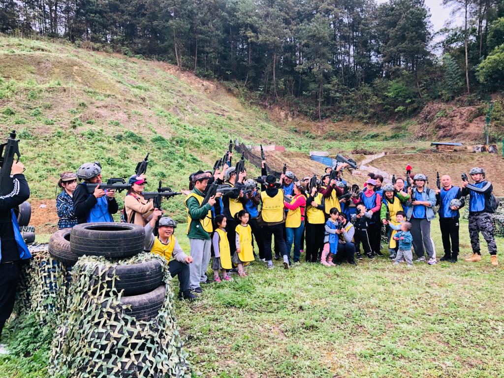 为更好地亲近自然,植树过后,老师们换好装备,开展真人CS模拟战场活动,在活动中,老师们被分为黄、蓝两队进行比赛,个个斗志昂扬,精神饱满,迎接对手的“攻击”。