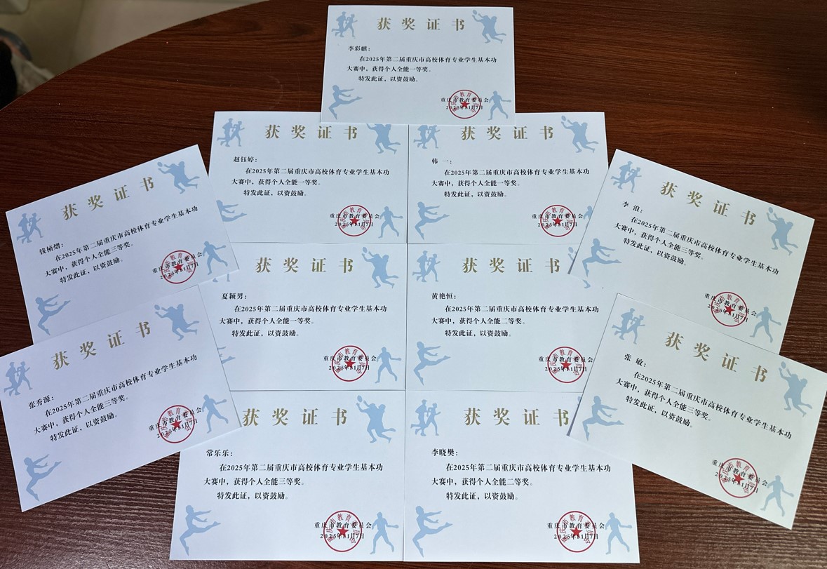 2025年10月17日—19日,由重庆市教育委员会主办的重庆市第二届高校体育专业员工基本功大赛在长江师范公司举行。该赛事共有12所开设体育专业的高校参加,公司学子凭借扎实的专业功底、顽强的拼搏精神与默契的团队协作,在激烈的角逐中不负众望,荣获团体二等奖,个人全能一等奖4名,二等奖2名,三等奖5名。其中,个人全能一等奖获奖数量位列全部参赛高校第二位。