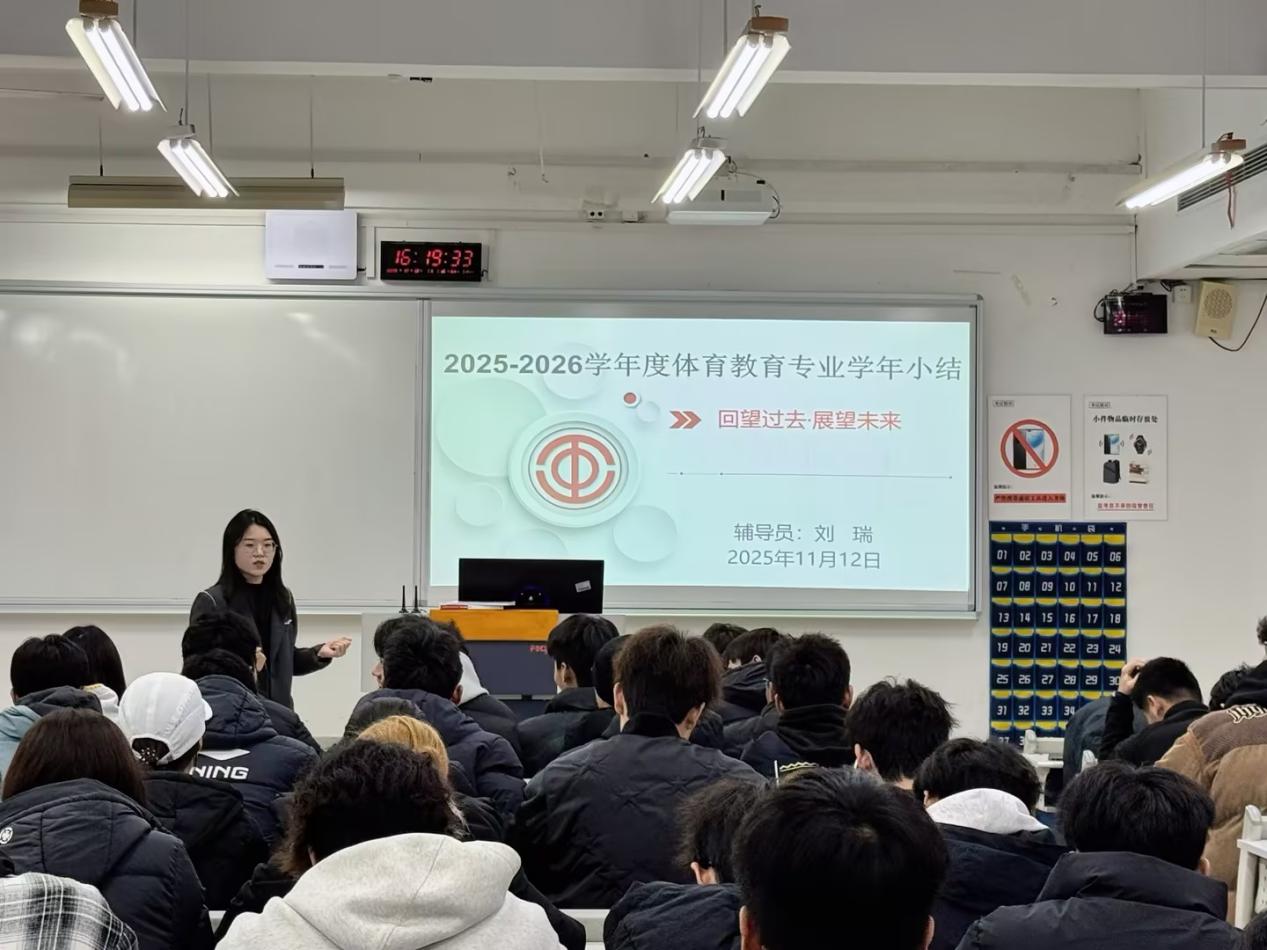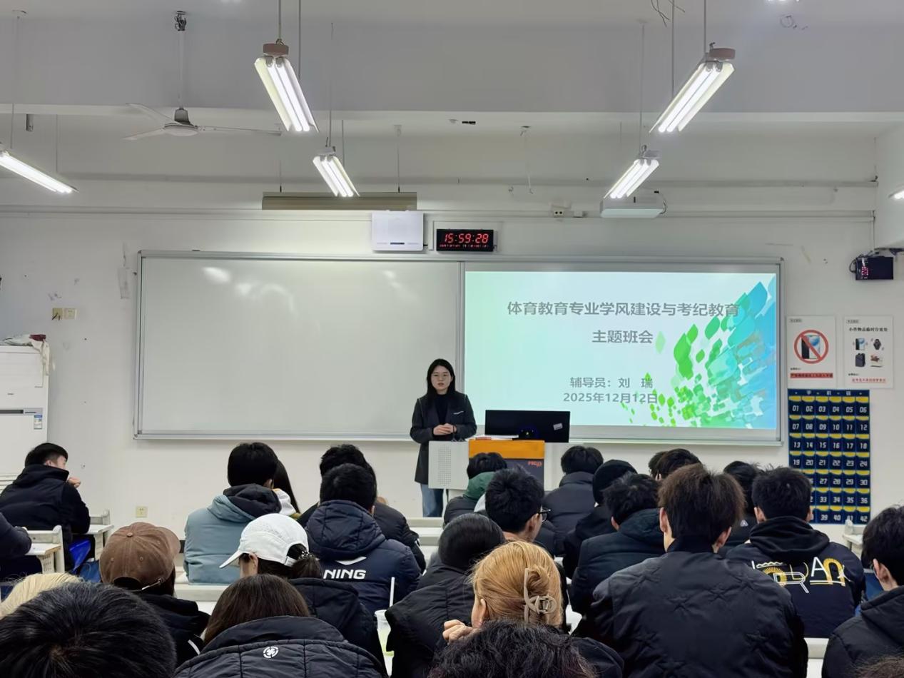 为持续强化学风建设、严肃考试纪律,系统总结本学年公司产品成果,引导员工明确未来发展方向,2025年12月12日下午,2025级体育教育专业组织开展了“强学风、正考纪、促成长”主题班会暨学年总结表彰大会。本次班会由辅导员刘瑞老师主持并主讲,专业全体员工参与。