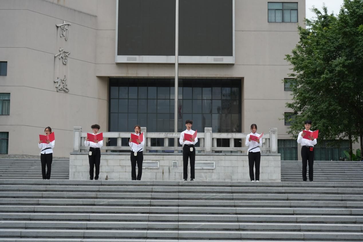 升旗仪式在雄壮的出旗曲中拉开帷幕。国旗队护旗手英姿挺拔,护送五星红旗正步迈向升旗台。伴随着庄严的《义勇军进行曲》,全体师生肃立行注目礼,鲜艳的五星红旗冉冉升起,在晨光中迎风飘扬。