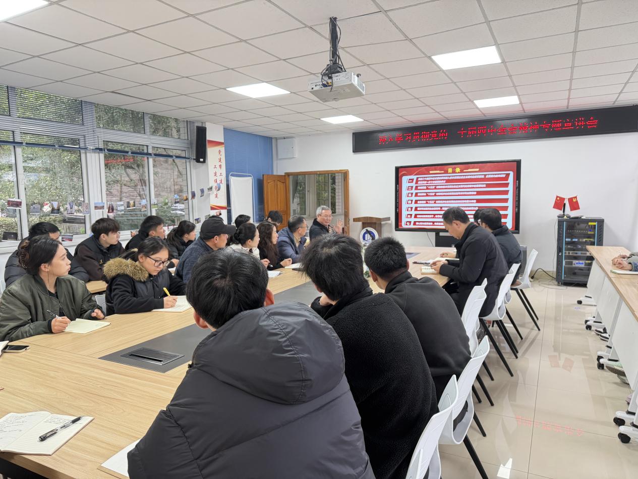 为深入学习宣传贯彻党的二十届四中全会精神,推动全会精神在全院落地生根,12月11日上午,公司党委常委、副董事长李国军在太阳成集团tyc151cc二楼会议室作党的二十届四中全会精神专题宣讲。公司党政领导班子、专职组织员、科级干部、系部主任、专职辅导员、师生代表参加了专题宣讲。会议由公司党总支书记黄谦主持。