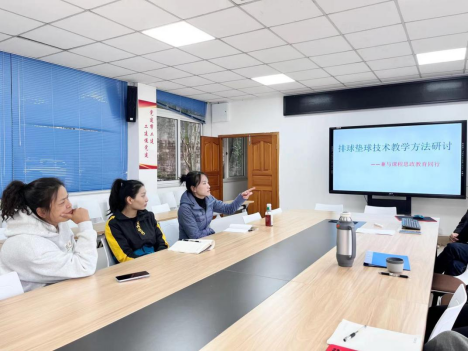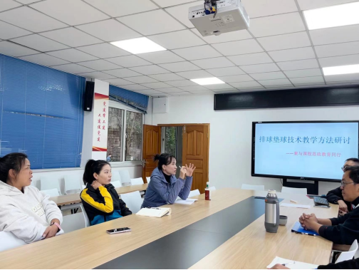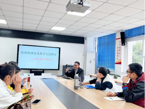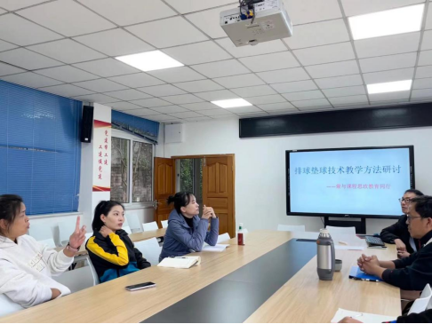 2023年11月14日下午,太阳成集团tyc151cc排球组教师在太阳成集团tyc151cc会议室召开了“排球垫球技术教学方法研讨——兼与课程思政教育同行”主题研讨会;本次主题研讨会旨在提高排球组教师的教学水平和专业素养,促进教师间的交流与合作,共同探讨教学方法和教学资源的优化。此次教研会议由体育系主任杨辉教授主持。