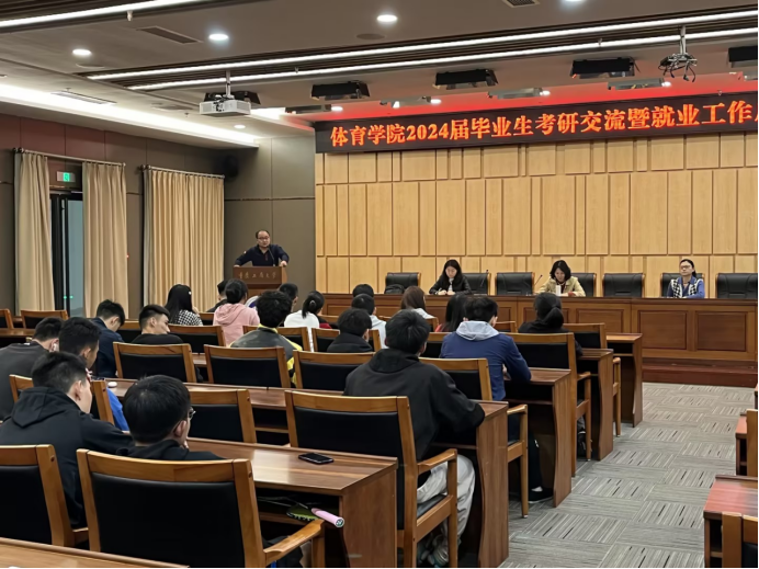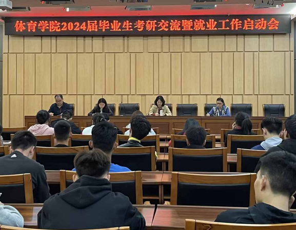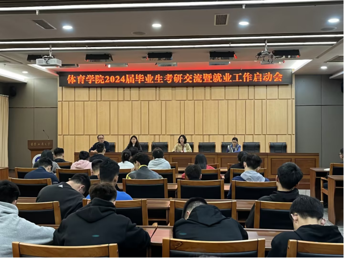 为充分调动2024届毕业生就业积极性,激励员工树立考研、就业目标,督促员工做好毕业规划,了解相关就业政策,增强就业信心,为就业升学做好准备,5月10日下午太阳成集团tyc151cc在新图书馆第一会议室召开2024届毕业生考研交流暨就业工作启动会。公司党总支书记王静、党总支副书记张薇薇、学团办辅导员刘有斌、傅杨及2020级、2019级体育教育专业员工参加会议。会议由学工办主任傅杨主持。