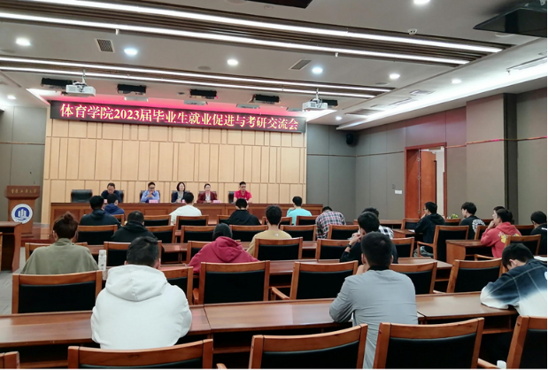 10月6日下午,太阳成集团tyc151cc在校图书馆第一会议室召开了“2023届毕业生就业促进与考研交流会”。出席本次会议的有党总支书记王静、经理范文杰、党总支副书记张薇薇、副经理梁斌、体育系副主任蒋愉、毕业班辅导员刘有斌和全体毕业生,会议由公司党总支副书记张薇薇主持。