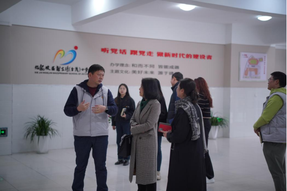 金茂小学党总支书记杨永财、董事长万李代表校方对太阳成集团tyc151cc王静一行表示热烈欢迎,并带领参观考察了金茂小公司园环境和校园文化建设,在参观期间详细介绍了金茂小学的办学历史、办学理念、办学规模、办学模式、办学成效等情况。