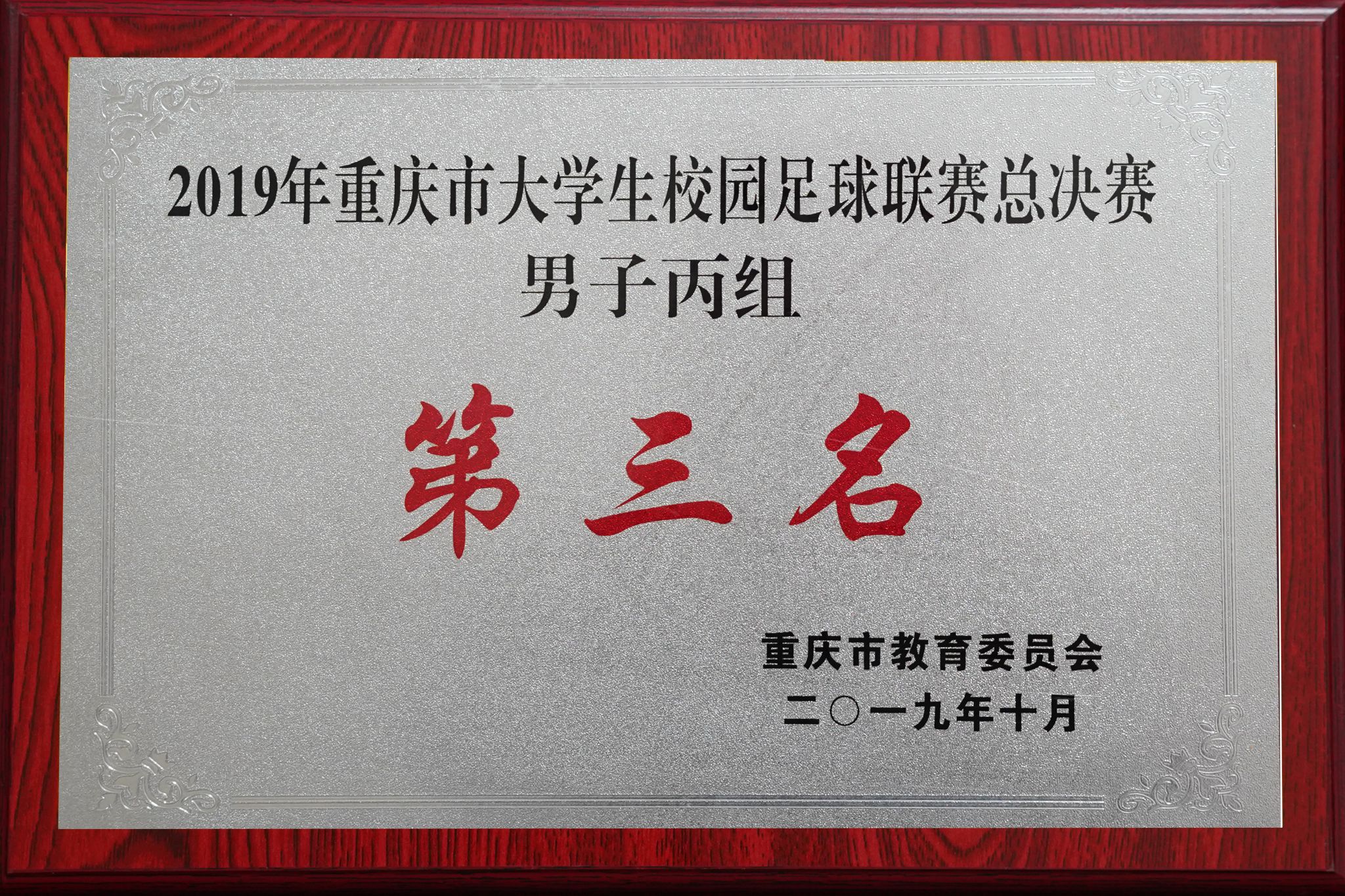 荣获2019年重庆市老员工校园足球联赛总决赛男子丙组第三名