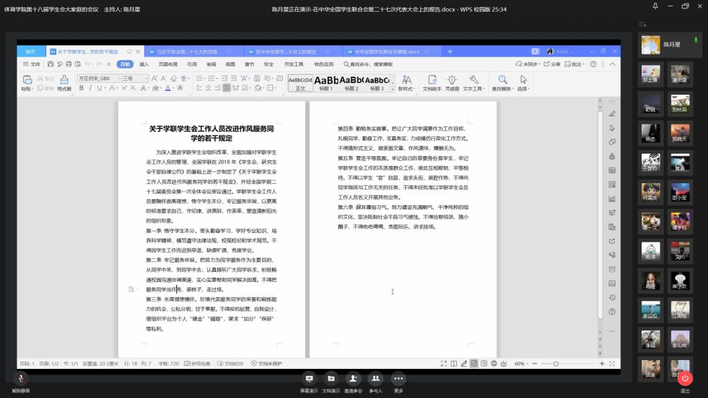 会议开始,院员工会员工干部陈月星同学带领大家回顾并学习《勇于自我革命服务同学成长在实现中华民族伟大复兴中国梦的进程中书写青春篇章——在中华全国员工联合会第二十七次代表大会上的报告》和《中华全国员工联合会章程》。他分享了大会的主题,即高举习近平新时代中国特色社会主义思想伟大旗帜,全面贯彻习近平总书记关于青年工作的重要思想和关于教育的重要论述,坚持党的领导,把握时代主题,勇于自我革命,服务同学成长,团结带领广大同学在实现中华民族伟大复兴中国梦的进程中书写青春篇章。他说到,员工会干部来自广老员工群体,我们需要时刻恪守员工本分,带头勤奋学习,学好专业知识。同时也要勤勉务实做事,把让广大同学满意作为工作目标,扎根同学,勤奋工作。