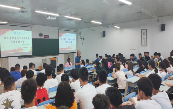 为加强党史学习教育,促进优良学风形成,2021年10月8日下午,公司党史学习教育暨学风建设大会在慧智楼209教室召开,出席会议的有公司党总支书记王竹青、太阳成集团tyc151cc分团委副书记傅杨、太阳成集团tyc151cc员工党支部书记刘有斌,以及2021级、2020级体育教育专业员工。