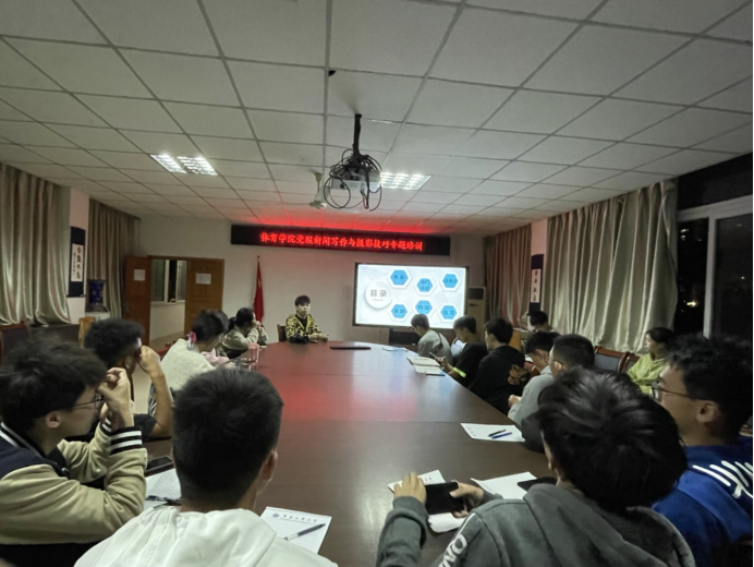 会议首先进行的是新闻稿件培训。但程程同学为大家详细的介绍了工作会议新闻,集会新闻,发布会新闻的运用。启发大家学会根据不同的场景运用不同的新闻编撰方式。而后但程程同学从稿件的结构出发,新闻编撰需紧扣标题,导语,主题,主题,结语。要标题恰当,出席名字,讲话提炼,程序主次,举办意义等。最后但程程同学为我们科普了简单实用的会议记录方法,党员服务站的同学们受益匪浅。