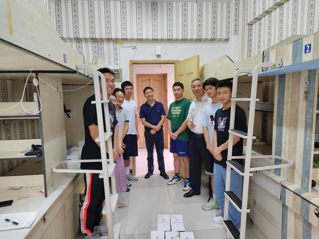 李国军来到留宿员工寝室,向在场同学表示亲切问候,详细了解同学们留校学习和生活情况,与他们亲切交谈,对遵守疫情防控要求、勇战酷暑高温、勤奋刻苦学习的同学们给予高度赞扬,对考研学子寄予殷切期望和祝福。同时,他还勉励体育学子要努力学好专业知识,锤炼过硬本领,为建设体育强国、健康中国贡献青春力量。