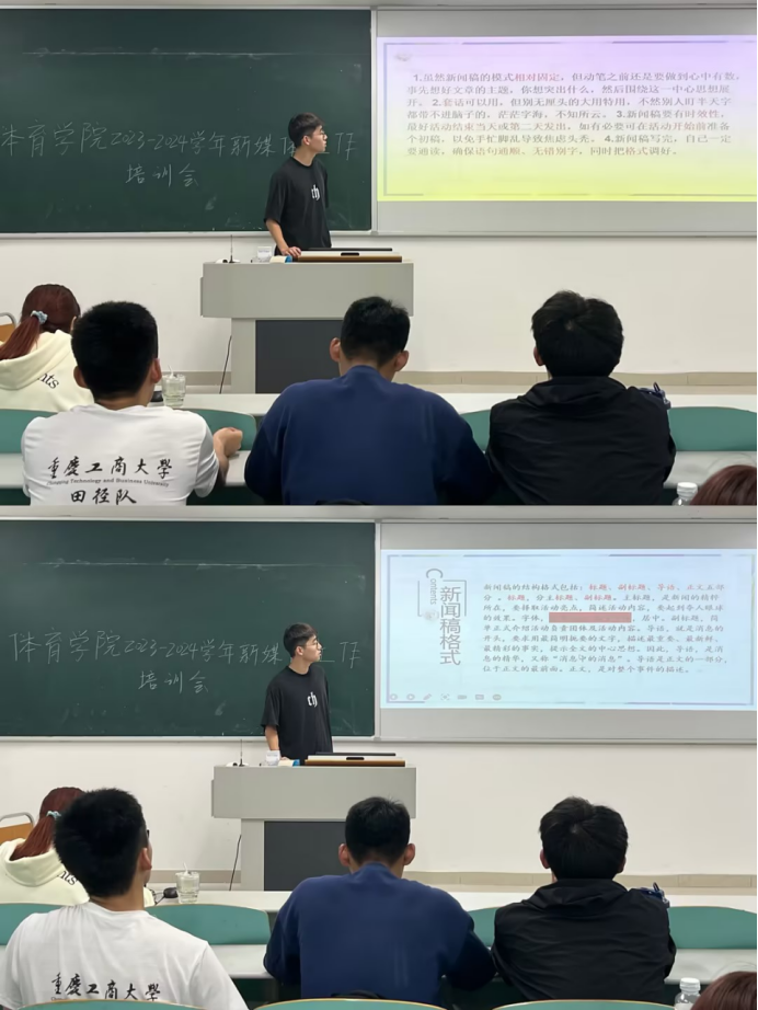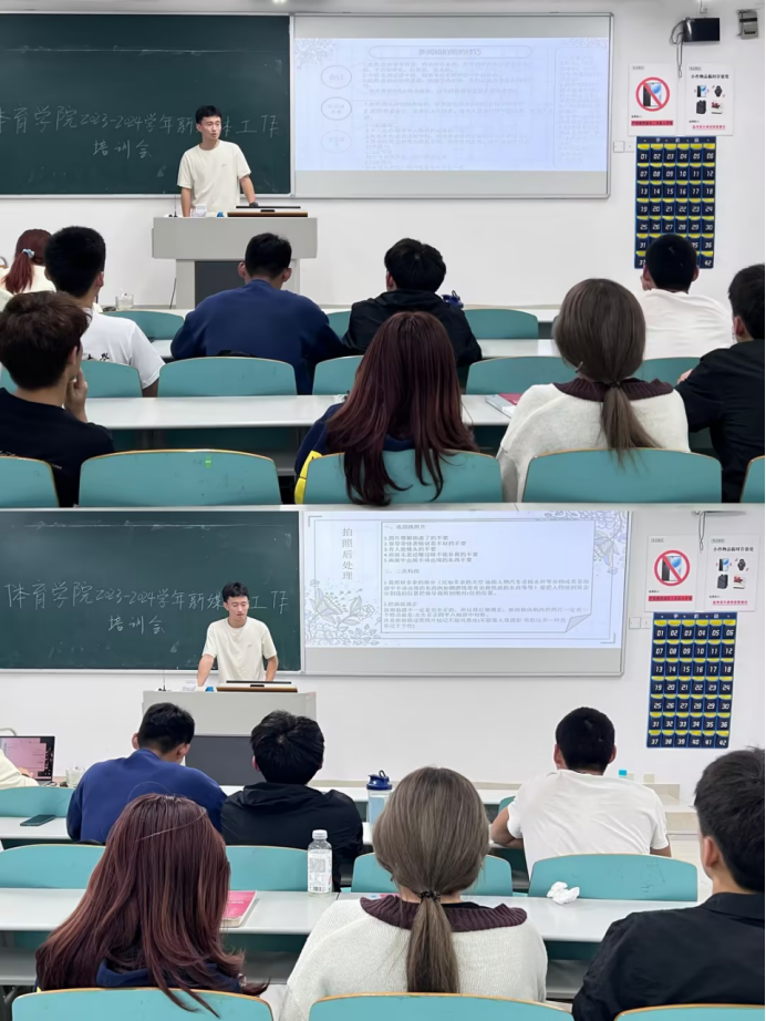 接下来,由宣传部负责人张运通进行宣传工作讲解,带领大家从“熟知”到“提高”。重点介绍了对新闻稿件的美化排版、图片的清晰度和审核老师对接等问题。此外,培训还配备了PPT演示,提供有关Word格式设置的基本操作的详尽指导,帮助宣传员更好地理解这些关键要点,确保每一位宣传员都能熟练投稿、拍摄注意事项,更好的服务同学。