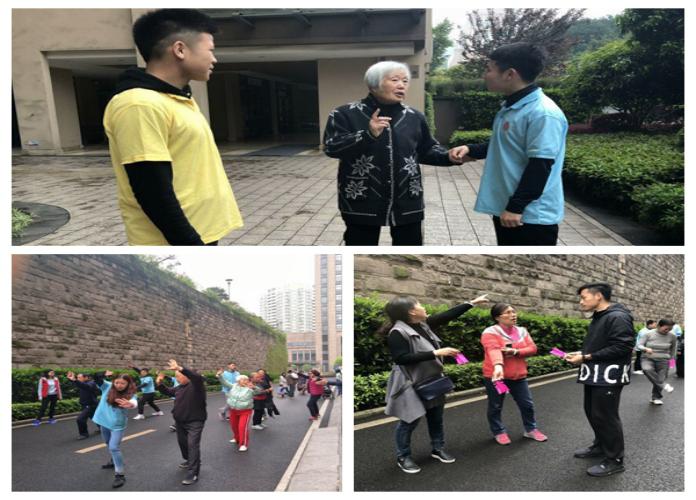 虽说三月万物复苏、大地回春,可雨后的清晨却依旧寒凉,但这些都不足以抵挡同学们内心的服务热情,到达目的地后,便热火朝天的布置场地。随后,志愿者们就开始与社区居民进行体育活动互动。本次体育项目分为太极拳、毽球、手指操、健身操。在志愿者的组织下,社区居民积极学习太极拳、毽球、手指操和健身操体育项目。在太极拳的学习过程中,一位练习太极拳几十年的老奶奶与志愿者讲述了太极拳的悠久历史,让志愿者深刻的感受到社区居民的忠诚热爱。最后,志愿服务活动圆满结束后与社区居民一起合影留念,他们希望以后这样的健身活动能多开展,帮助他们学习正确的健身动作。