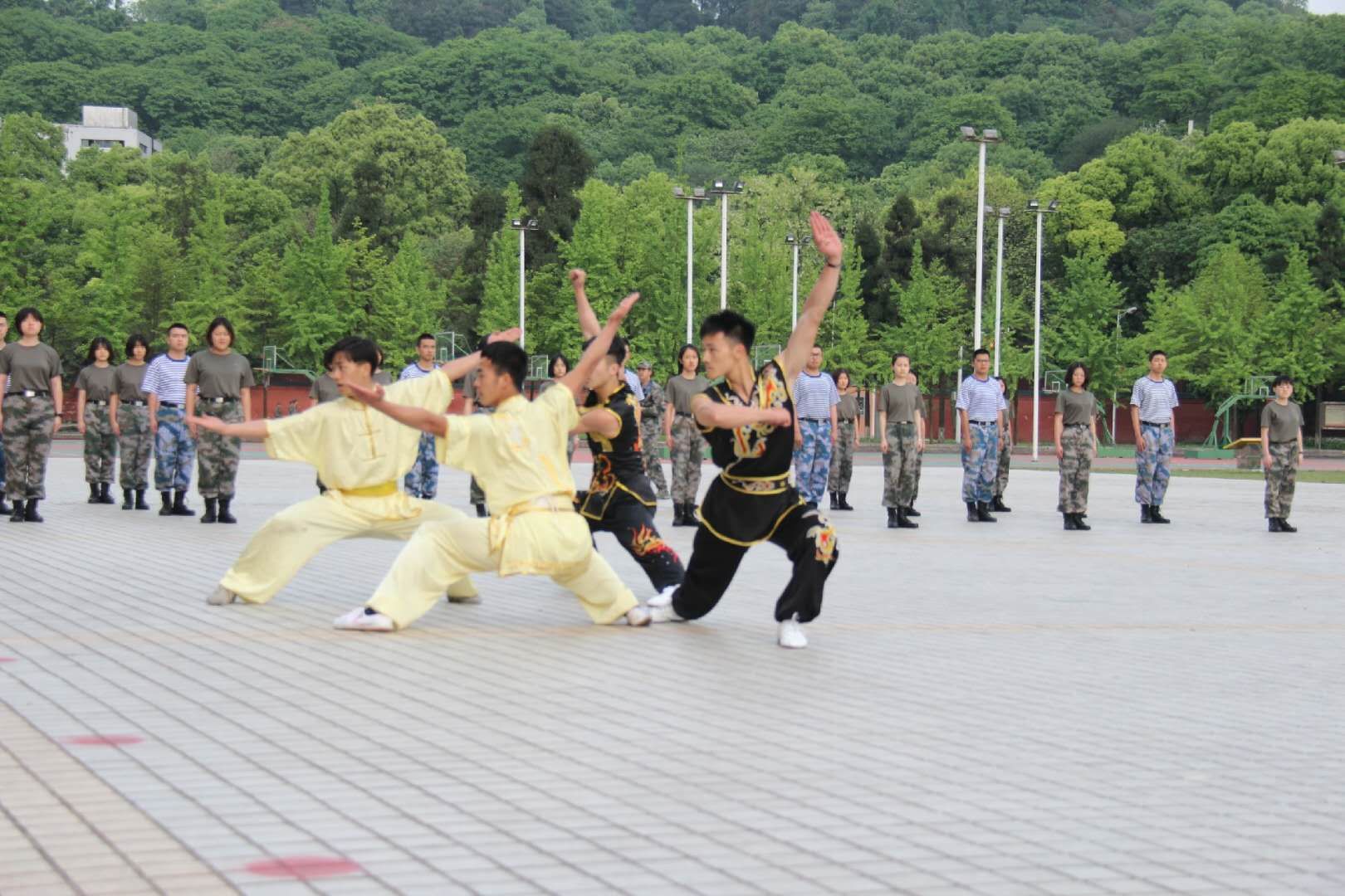 4月15日,2017级体育教育专业4名武术队学子受中国人民解放军陆军工程大学通信士官公司邀请参加了该校首届校运动会。作为开幕式的重头戏,刘定武、杨胜强、吴秋坪和安钰钢四位同学的武术表演,动作一气呵成,一个个高难度动作无不显示了同学们扎实的基本功,和吃苦耐劳的精神,受到通信士官公司领导的高度认可和好评。武术彰显了华夏几千年的文明传承,孕育了中华儿女世代的英姿飒爽,寄托了中华民族不朽的智慧与创作,赋予了中华沃土一番瑰丽神奇。