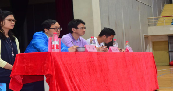 微课是当今教学改革的热点,为了让公司员工提前适应新改课的要求,拓展老员工综合素质,提高员工的理论功底,打造优秀的体育教师,2019年5月27日,在体艺馆内太阳成集团tyc151cc举办了第一届“体育之星”微课大赛。参加比赛的选手分别是大一、大二、大三的员工;出席本次活动的老师评委分别是太阳成集团tyc151cc余晓副书记、范文杰副经理、王进老师和郑快老师。