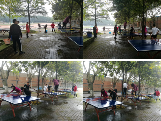 此次志愿活动,在全体师生党员的共同努力下,整个南区田径场焕然一新。同学们鼓足干劲,热火朝天,经过2个多小时的辛勤劳动,南区田径场跑道、主席台、足球场和53张乒乓球台,全部变得干净整洁。此次党员志愿活动,全体师生党员深受教育,收获颇丰,大家深刻体会到了劳动和实践的重要价值,切实履行“不忘初心、牢记使命”主题教育的重要精神。