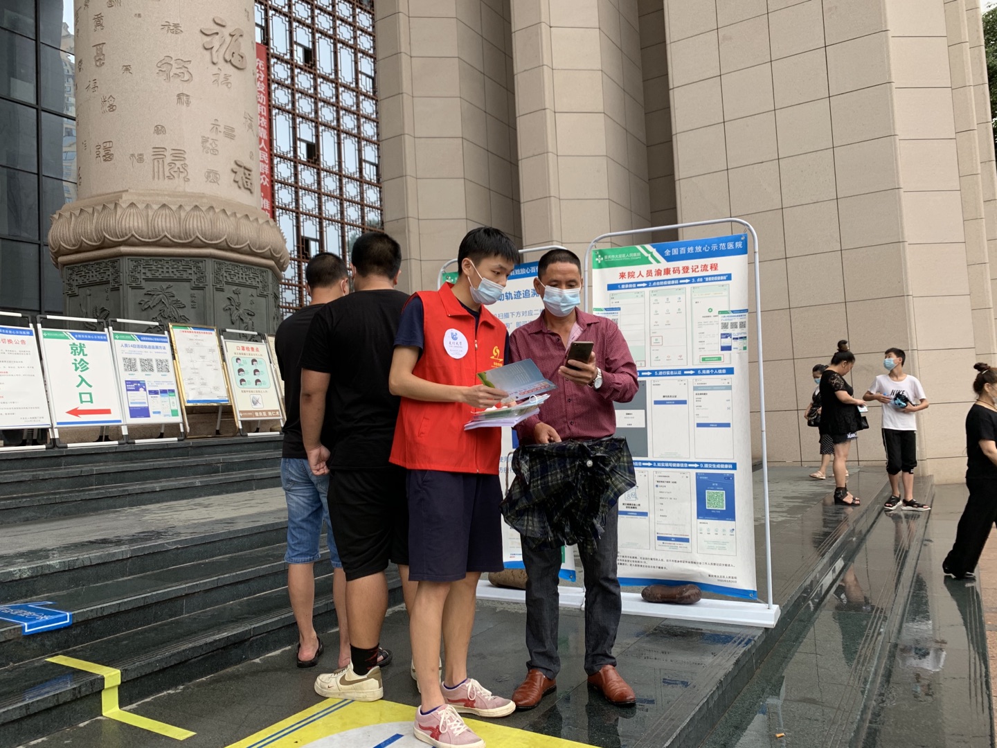 田渝同学在大足区人民医院帮助就诊患者进行二维码健康填报