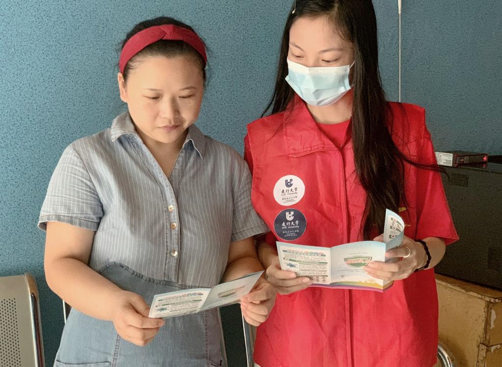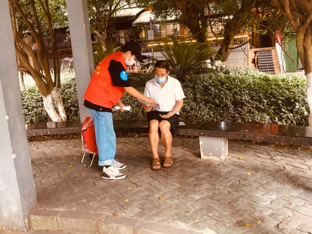潘宏愿在荣昌区昌元街道玉屏社区进行防疫知识宣传