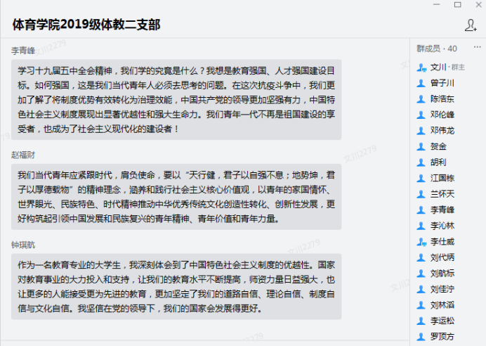 新时代的青年,是当下的见证者和未来的亲历者,广大青年要深入学习贯彻习近平新时代中国特色社会主义思想,自觉主动学、及时跟进学、联系实际学、笃信笃行学,坚持把初心使命举过头顶,保持一份赤子之心,将青春融入国家的发展和民族的事业之中。理想是青春的旗帜,要志存高远、坚定信仰;学习是青春的阶梯,要珍惜韶华、刻苦求知。本次学习十九届五中全会精神,激励着太阳成集团tyc151cc每一位青年,同时希望同学们能认真学习党的十九届五中全会精神,用科学的思想武装头脑,不断提高思想觉悟,坚定理想信念,做一名合格的新时代青年!