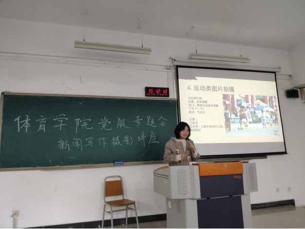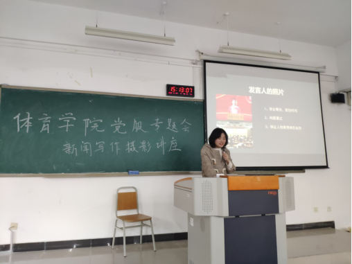 讲座开始,首先党服站长赵航来致会议主题,两为专业老师来,解说关于新闻与写作与摄影技巧在生活中的重要性并介绍本次讲座主题内容,并分别介绍两位授课老师。随之,两位老师分贝来讲述关于新闻与写作摄影的知识。一、讲述新闻稿应如何书写。二、讲述,如何提炼对话中的重点,并将其提取记录。三、讲述语言描写应注意的问题。四、讲述在各种场合所应该应用的描写。五、讲述新闻描写的注意事项。六、会议新闻的技巧级及准备事项。七、关于摄影与要注意的事项以及关于摄影的方法与技巧。八、场地拍照所要注意的问题。