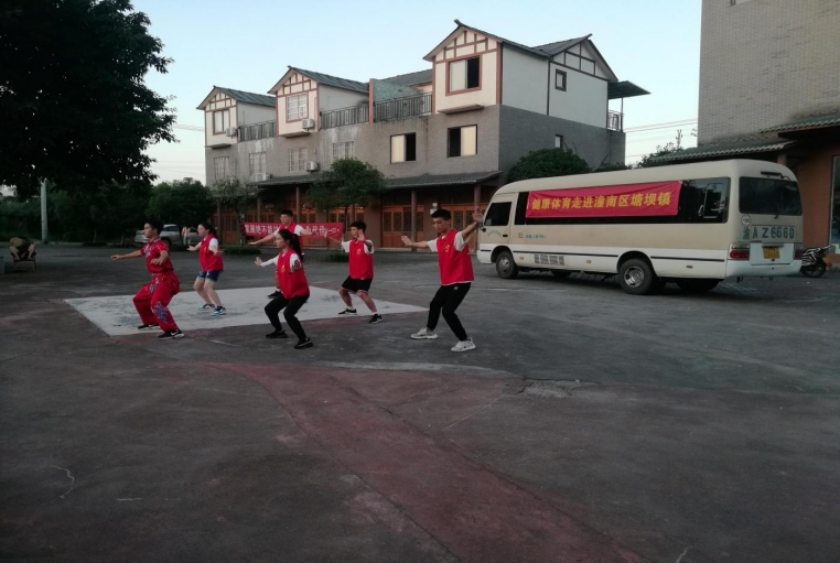 健康体育走进乡村,对于乡村振兴具有重要的价值和意义。经过访谈和调研,社会实践团得悉乡村老百姓对健康和体育的需求是非常大的。7月12日,社会实践团12名体育专业同学为重庆市潼南区塘坝镇天印村的小孩和村民们带来了专业的武术表演和体育培训,最小的3岁,最长者90多岁,参与者多达300多人。