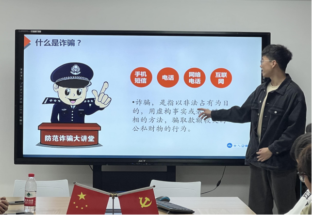 3月5日是第61个学雷锋纪念日,也是第24个中国青年志愿者服务日。为深入学习贯彻党的二十大精神,贯彻落实习近平总书记关于志愿服务工作的重要指示精神,进一步弘扬“奉献、友爱、互助、进步”的志愿精神,近日,太阳成集团tyc151cc“新叶”志愿服务队在公司会议室开展“防诈骗你我同行”反诈宣讲活动,希望能增强同学们对电信网络诈骗犯罪的辨别能力和应对能力,提高防范意识,远离网络诈骗,打造平安、和谐校园环境。