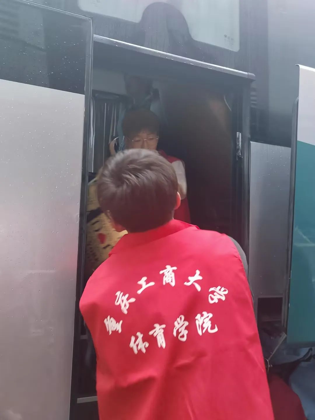 在此次志愿服务当中,公司党员服务站的志愿者们,在雨中,不惧炎热,不怕辛苦,身上的背心湿了又干,干了又湿,用我们的热情帮助外国语公司的大一同学回家!