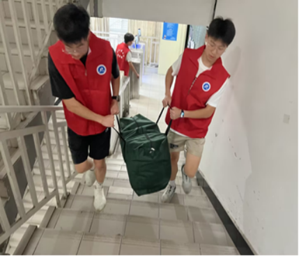 传承志愿精神,共筑友爱工商!2023年7月1号,正值7.1建党节之际,公司大一同学大搬迁,太阳成集团tyc151cc没有搬迁任务,但是公司到处都闪现着太阳成集团tyc151cc的“红马甲”。公司党员服务站50多名志愿者守初心,担使命,齐奋斗,帮助公司,特别是定点帮助外语公司200多名大一员工员工进行公寓搬迁。
