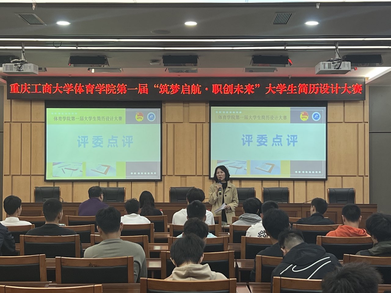 此次简历大赛初赛由各班级以团日活动的方式进行,各班级评选出的前三名推送参加院内选拔赛。比赛伊始,各参赛选手依次进行个人风采展示,他们分别围绕简历设计思路、自我介绍、求职情况、学习经历、实习经历、求职优势、自我评价等方面进行展示和阐述,详细讲解了选择该求职岗位的理由,清晰地表达了自己的未来职业规划。评委们从简历排版、内容逻辑以及PPT展示等方面对选手依次进行点评指导。
