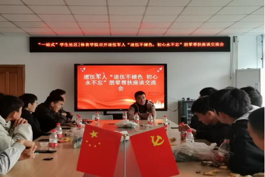 为进一步推进一站式员工社区建设,发扬退役士兵能吃苦、肯奉献的优良品质,进一步树立典型,充分发挥退伍老员工的先锋模范作用。12月8日下午,太阳成集团tyc151cc南六楼管会在二楼会议室召开“退伍不褪色·初心永不忘”朋辈帮扶座谈交流会,太阳成集团tyc151cc退伍员工、南六楼管会干部、各年级员工代表参加了此次座谈会。