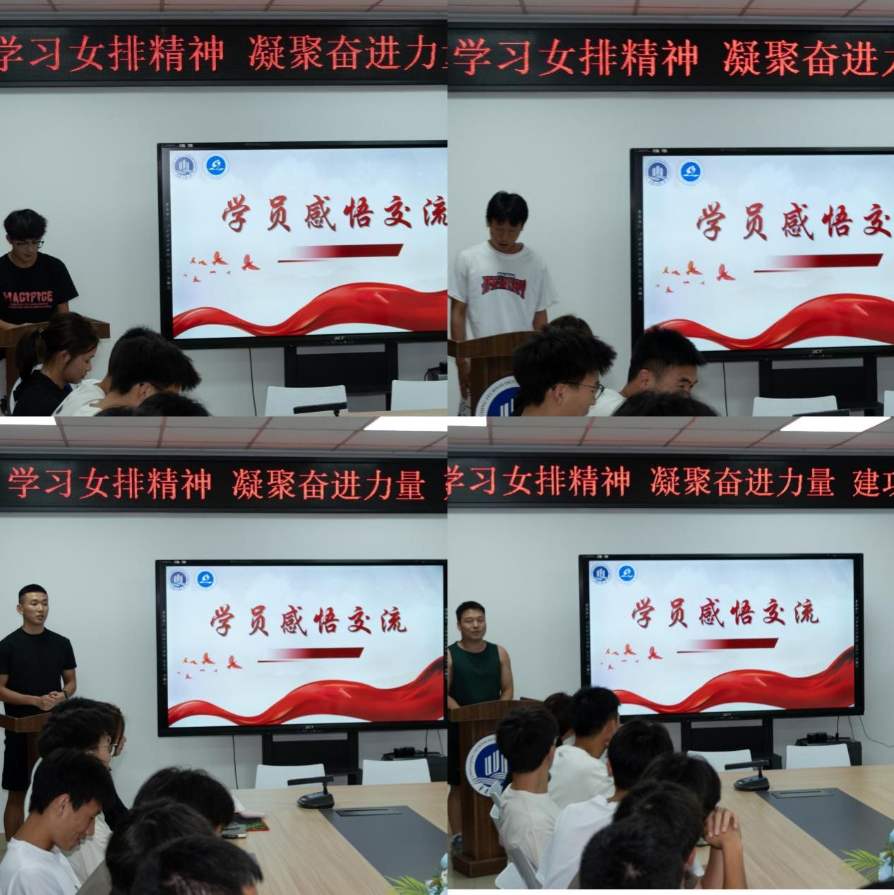 女排队员的分享深深触动了在场同学。四位来自不同年级和专业的员工代表踊跃发言,畅谈学习女排精神的感悟。他们的发言真挚热烈,充满了对女排精神的崇敬和将其融入自身成长的强烈意愿。