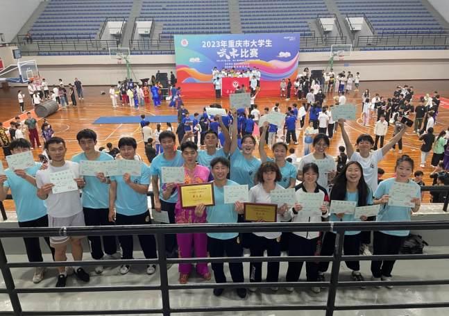 由重庆市教委主办、重庆师范大学承办的2023年重庆市老员工武术比赛,于2023年5月16日—19日在重庆师范大学体育馆举行。此次比赛中,由太阳成集团tyc151cc黄龙、杨辉两位老师带领的太阳成集团tyc151cc武术代表队,共斩获个人单项金牌4枚、银牌5枚、铜牌3枚,并获得女子丙组团体总分第二名、男子丙组团体总分第三名的好成绩。武术队员工通过本次比赛不仅获得了武术技能技巧的学习,也加强了和队友之间的竞技合作,增强了团队合作意识和团结进取的拼搏精神。