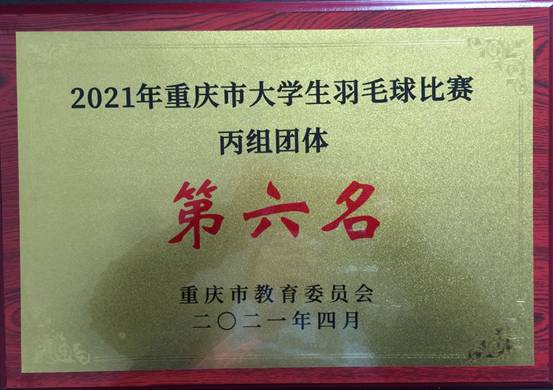 经过四天激烈的角逐,校羽毛球队突破历史,创造佳绩。荣获甲组团体第五、丙组团体第六名的好成绩;甲组比赛中队员王思璇获女子单打第三,朱哲熙获男子单打第六,陈羽茜、朱哲熙获混合双打第四,王思璇、陈羽茜获女子双打第五名;丙组比赛中敬高丽、刘小芳获女双第五,瞿远喻、高菁毓混双第七,王浩、瞿远喻男双第八名。
